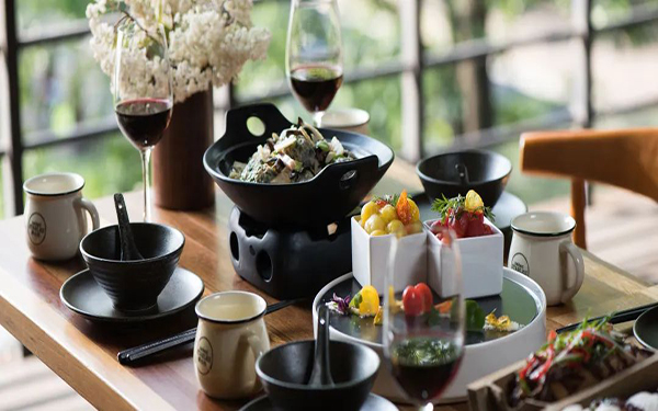 4.特色餐饮康养:裸心谷的食材多取自当地的有机农场,新鲜健康,为游客的身体提供充足的养分。度假村内的三个特色餐厅,会根据食材的特点和游客的口味需求,精心烹制各种美食,既能满足游客的味蕾,又能起到养生保健的作用。