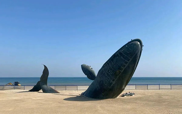 2.孤独的鲸(金沙滩海滨公园):距 13.6 公里,驾车 37 分钟。没有直达公交,可先乘坐公交到开发区海边附近站点,再步行或打车前往。