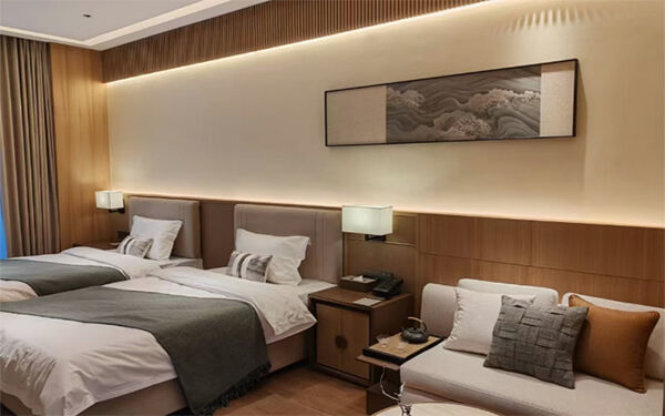 房间设施:房内采用棉麻工艺装饰,设施齐全,兼具自然野趣与生活便利性。