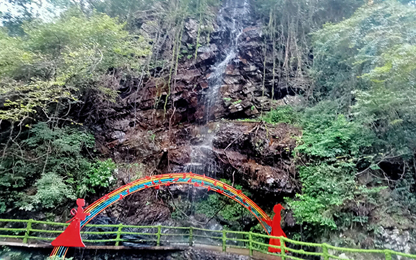 沐光谷站: 叠水瀑布区域,水流撞击产生大量负氧离子,是森林浴的绝佳场所