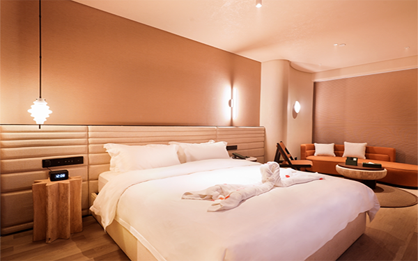 度假区将客房隐匿于云海竹林间,打造多元化住宿体系,总体客房数量约 1058 间,是郴州市一次性接待能力最强的度假酒店集群。房型涵盖公寓高星级客房、神秘 “洞穴” 客房、特色竹林客房,且所有客房均实现温泉入户,游客可在房间内独享私密泡汤体验,实现 “推窗见竹海,入户享温泉” 的沉浸式度假感。