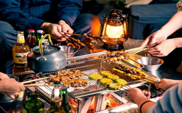 普洱烤鸡:现宰散养土鸡经普洱茶叶腌制,炭火慢烤四小时而成,外皮焦香酥脆,肉质多汁入味,茶香中和油腻,越嚼越香,是户外烧烤必点。