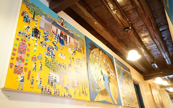 如今,艺术双廊吸引着越来越多人来访,地处伙山村的画社作为其中的重要部分,衍生出“鸡窝咖啡馆”“双廊白族老奶奶”“农民画社”等IP,慕名而来的游客带动周边农家乐、土特产销售增长。“我们去过上海、深圳这些地方办画展,感谢沈老师他们,让我们能走出去,到这么多地方。”在奶奶们走出家乡看世界的同时,也让世界看见了大理乡村的诗意与力量。