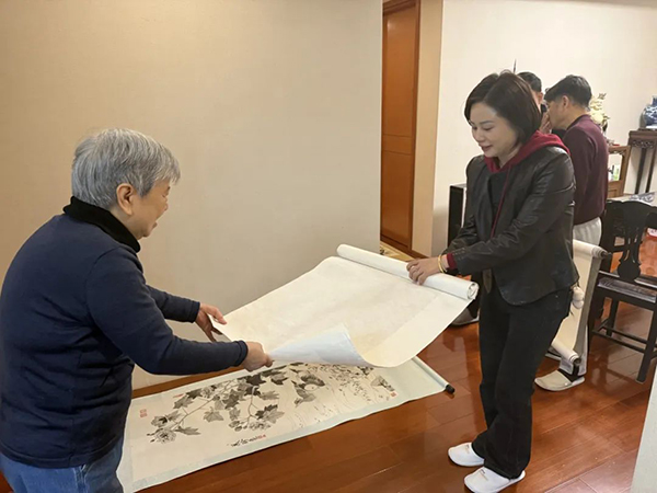 为丰富退休后的时光,李美珍自学中国画,善画山水、花鸟、人物……走进李美珍的家里,映入眼帘的便是满屋山水画,作品挂在客厅、卧室的每一面墙上,仿佛来到了一座小型美术馆。大大小小的国画作品,笔触细腻、色彩饱满、形象生动,难以想象这些看起来十分专业的作品,竟然全都出自76岁的老人手中。
