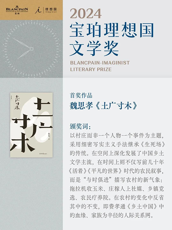 长篇小说《土广寸木》荣获第七届宝珀理想国文学奖首奖的颁奖词。(图片源于网络)