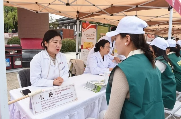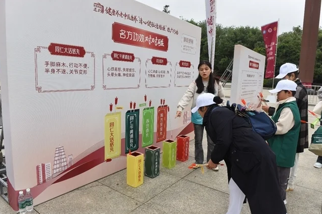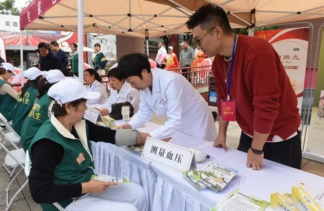 终点区域同样精彩纷呈,健康投壶、知识转盘、主题拍照板等互动游戏将中医康养知识融入趣味体验,寓教于乐,深化健康理念;西安市中医院专家团队提供一对一专业咨询,让大家带着问题而来,怀揣安心而归。此外,参与者还有机会领取中医康养关爱包等精美礼品。北京同仁堂也再度发挥专业所长,其志愿者熟练地为中老年朋友们测量血压,针对不同情况给出科学的生活建议;在用药指导处,志愿者们耐心询问咨询者症状特点,用通俗易懂的语言为其提供清晰的用药指导和个体化建议。这一系列扎实的公益举措,生动诠释着百年老字号扎根社会、服务民生的诚挚初心,赢得现场市民的一致好评。