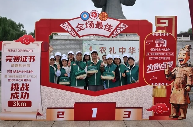 10月18日上午,由中国婚姻家庭研究会、中国老年人体育协会主办,中国家庭教育学会支持,北京同仁堂股份有限公司协办, 心系系列活动项目办公室承办的“家庭药箱进万家——健康养老中医康养”暨“清心健脑活络操”推广行动——西安市中老年健步走活动火热进行中。本次活动将“清心健脑活络操”与健步走有机融合,成为一次中医康养理念的生动实践,使“治未病”的中医智慧深深植根于公众心中,为“健康老龄化”贡献积极力量。