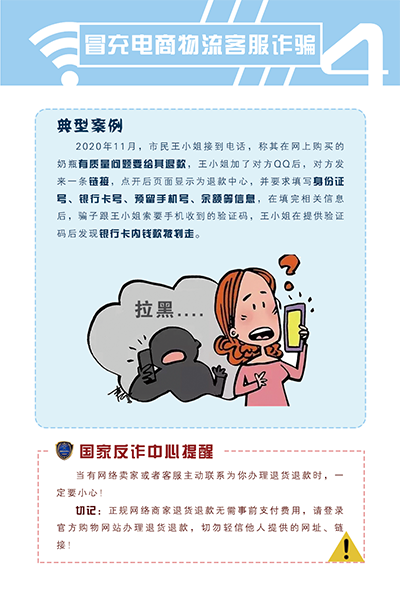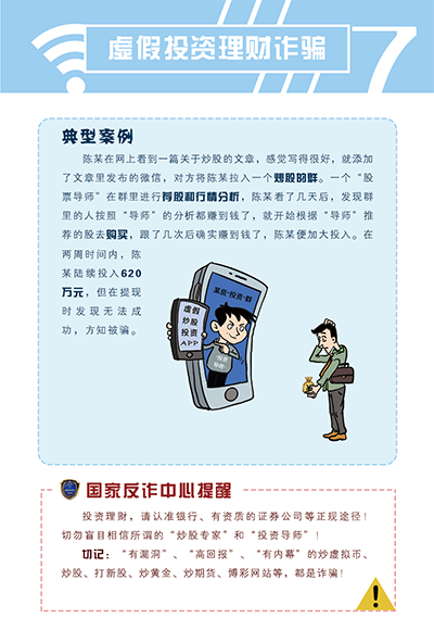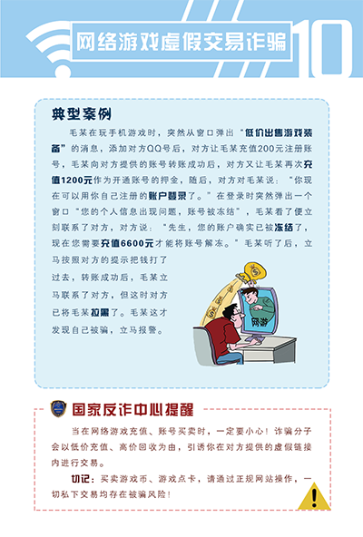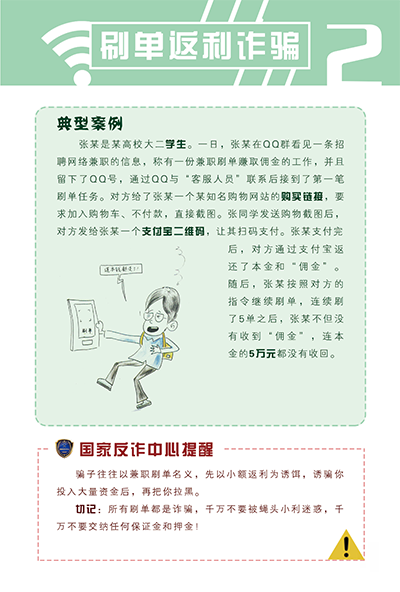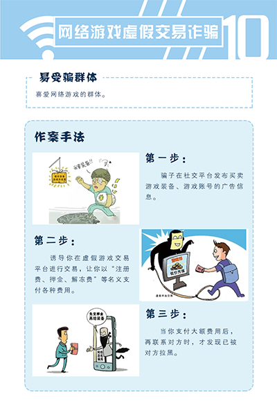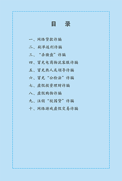 为进一步扩大反诈宣传覆盖面,提高广大群众防骗意识,国家反诈中心制作了《防范电信网络诈骗宣传手册》,向广大人民群众介绍了十种常见的电信网络诈骗类型: