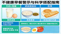 停!这3种不健康的早餐搭配别再吃了 早餐是一天中获取能量和营养的开始 但很多人对早餐的重视程度较低 许多人要么不吃早餐 要么匆匆应付了事 比如只吃牛奶+鸡蛋或者清粥酱菜 这样既不利于血糖控 制还会增加患胃病 脂肪肝以及胆结石等疾病风险 早餐怎么吃更健康? 快跟着小圈一起来看看吧~ 01 不好好